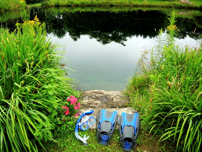 I think it is time for a swim now! Not sure if I should confess to this...but I am a skinny dipper...quite a look~~~mask, fins, & snorkel~~~only! Hey, what's the point of a private pond if you have to wear a suit!?